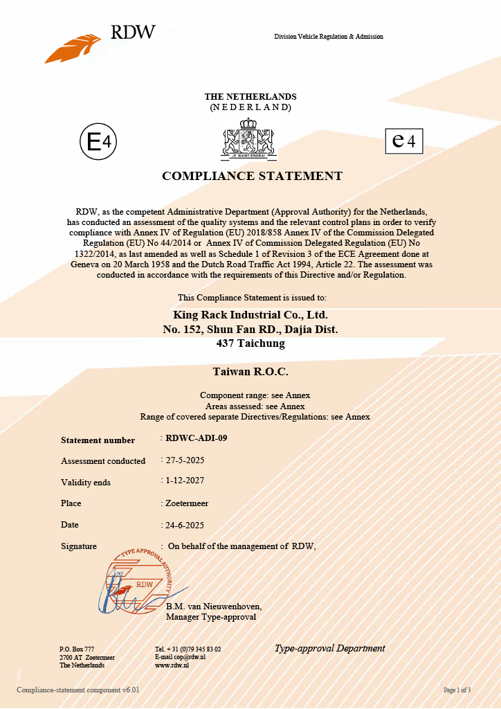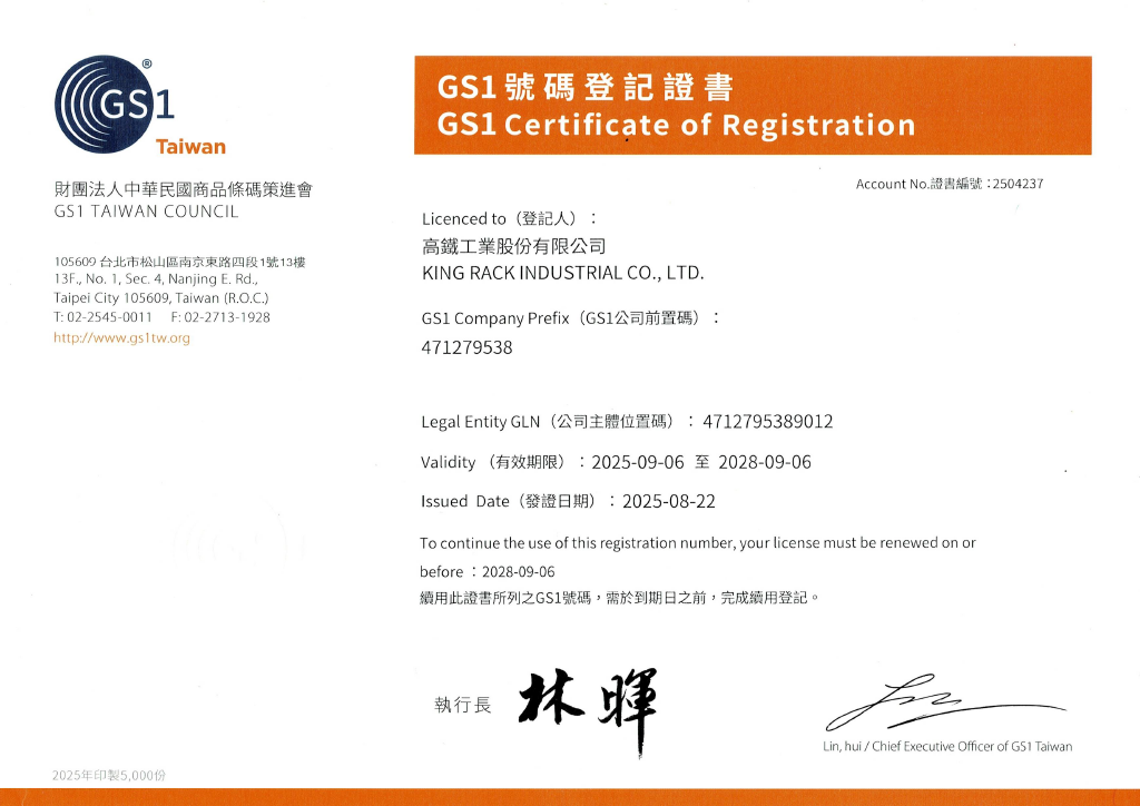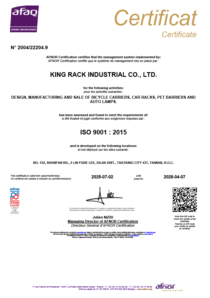 | AFNOR Certification certifies that the management system implemanated by KING RACK INDUSTRIAL CO., LTD. |